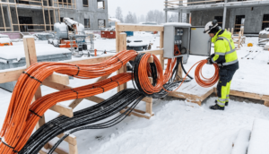 Construction power systems depend on clear, organized cable routing. Winter adds extra stress on every connection.